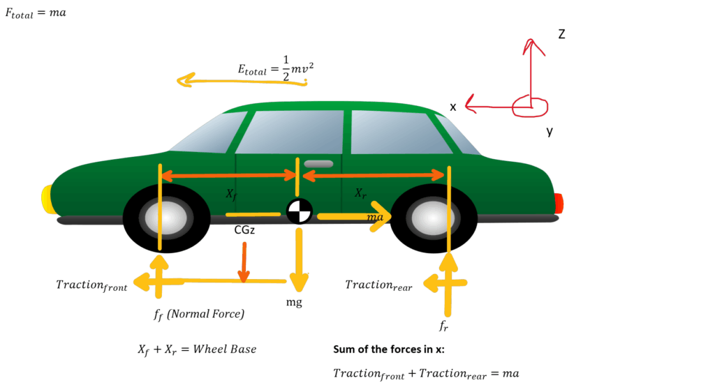 - Xf,Xr — distances from CG to front/rear axles (m)