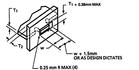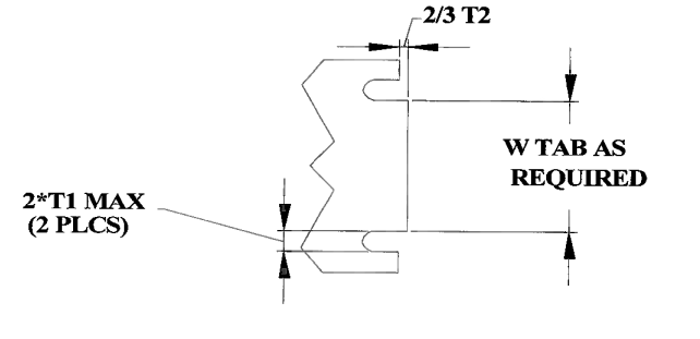 - Preferred tab projection dimension is 2/3 of the mating stock (T2) thickness.